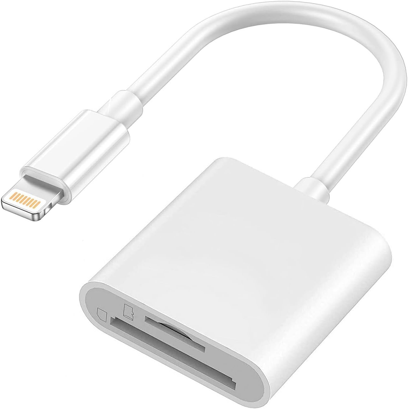 Adaptador de slot de cartão duplo Lightning para SD e TF, leitor de cartão de memória micro SD/SD certificado pela Apple MFi para iPhone 14 13 12 11 Pro Max XS XR X 8 iPad, Plug and Play