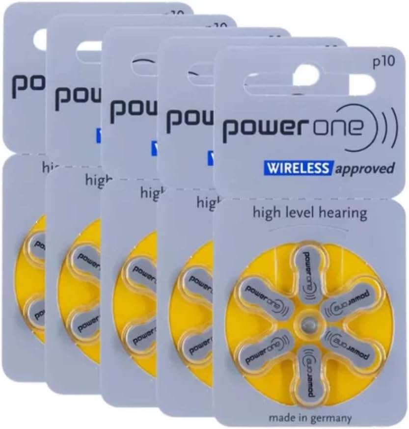 Baterias Auditivas Power One A10 (Tamanho 10 / PR70) – Kit Econômico 5 Cartelas (30 Pilhas) – Qualidade Alemã, Longa Duração e Sem Mercúrio