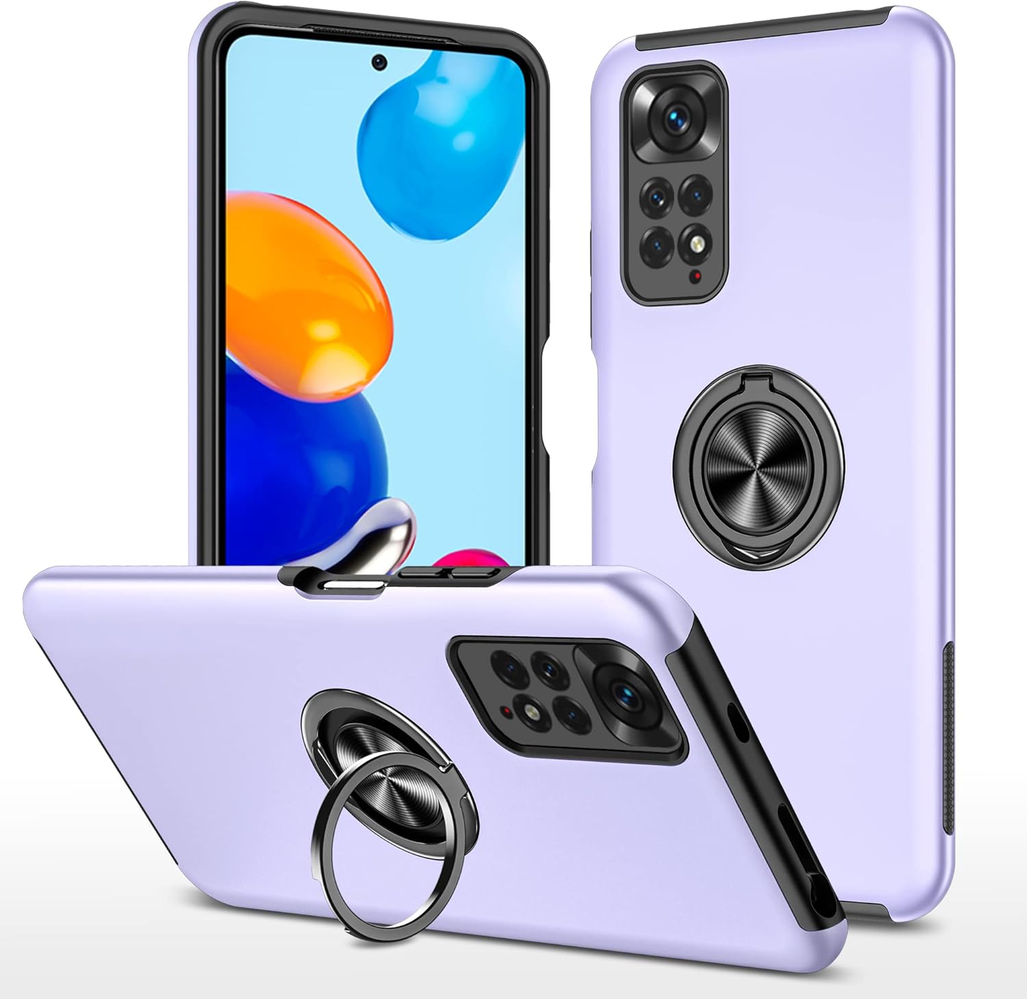 SORAKA Capa para Xiaomi Redmi Note 11 Pro 5G/4G com suporte de anel invisível e placa de metal para suporte magnético de carro, capa rígida de policarbonato macio TPU com amortecedor de grau militar
